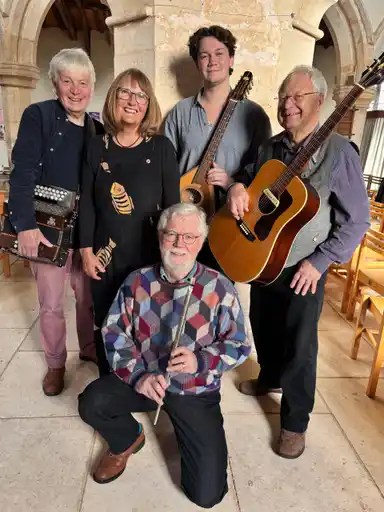 The Fruitcake Band bring together some of the best local traditional music players to produce an exciting sound to dance to with melodeon, fiddle, whistles, mandolin, guitar, bouzouki and hammered dulcimer.